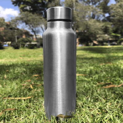 Botella en acero inoxidable con tapa removible. De 750 ml. Aislamiento para bebidas frías entre 4-6 horas. De 20.5 x 7.1 cm diámetro.