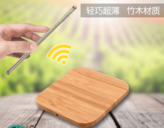 Cargador Inalambrico en madera, 1 usb cable 5V/1A, 9.4 x 9.4 x 0.8 cmts