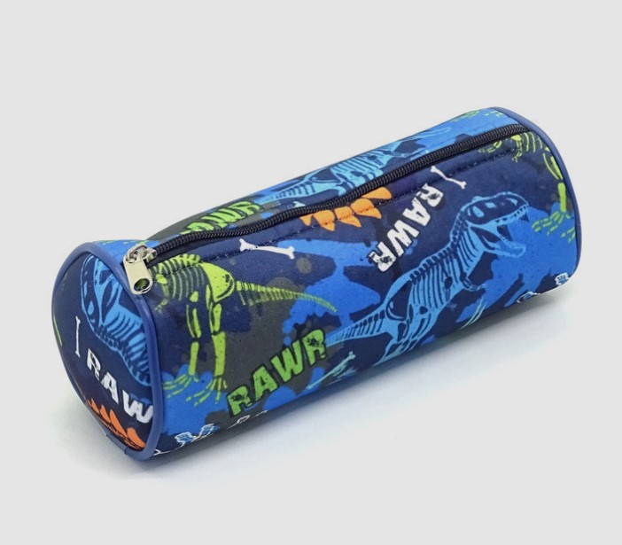 Cartuchera Cilindrica, elaborada en lona de poliester con recubrimiento de PVC, sublimada, con medida 25 cmts de ancho x 7 cmts de diametro lateral