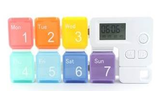 Dispensador de Pastillas con Timer, en PP, tamaño 17.2 x 7.3 x 2.5 cmts,