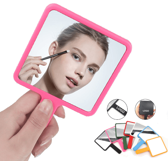 Espejo plastico de 6.5 x 6.5 cmts. con manija para agarrar